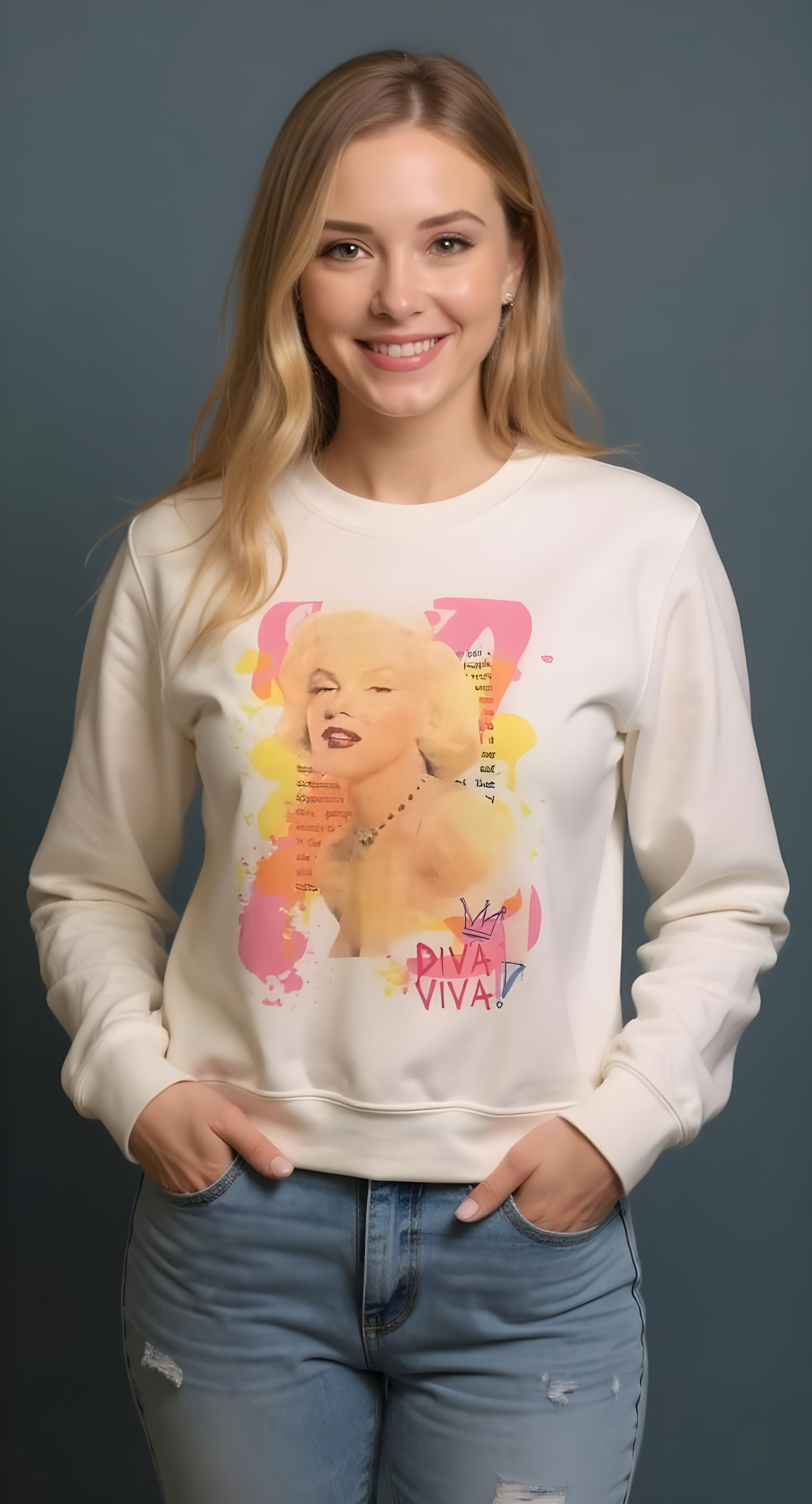 Featuring the softest sweatshirt with our Classic Diva Viva Design . It’s oversized design makes it an ideal choice whether you're lounging around the house or stepping out for a casual day. Perfect for Winter, Spring days and Summer nights.